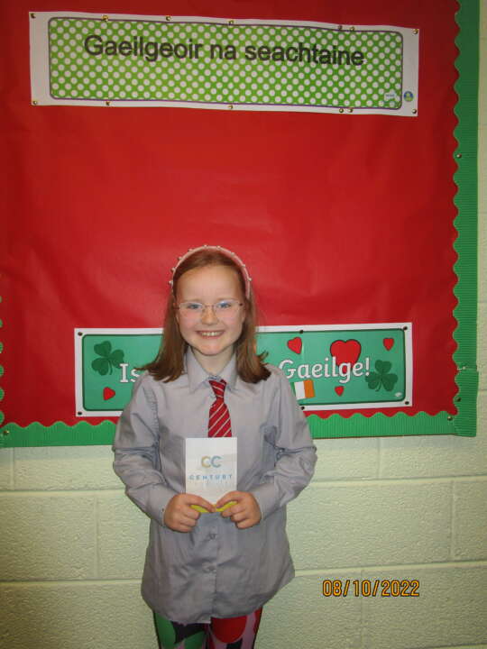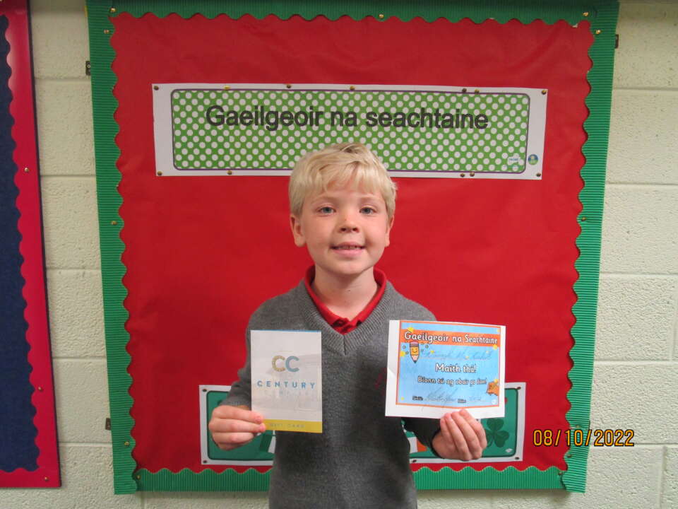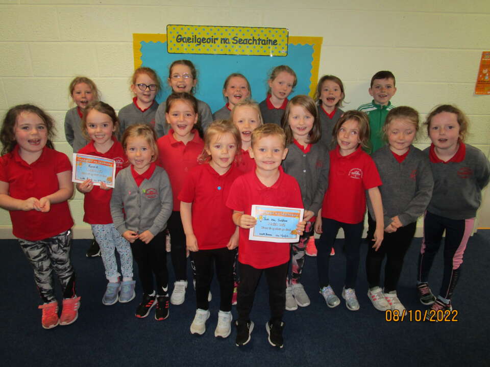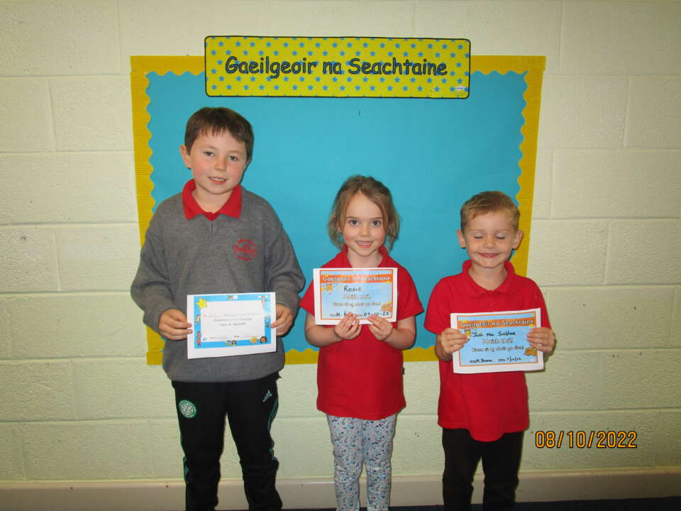 Comhghairdeas le na páistí uilig a fuair aitheantas don Ghaeilge an tseachtain seo. Tá muid iontach bródúil as an iarracht iontach atá na páistí go léir a dhéanamh sa scoil. Maith sibh!
